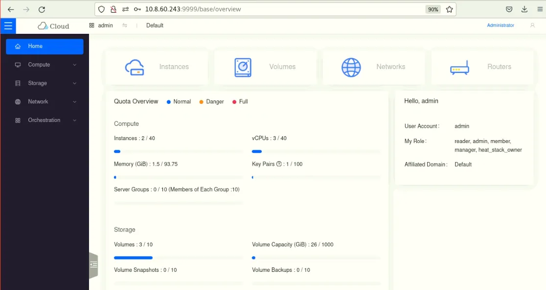 Il est aussi possible de piloter OpenStack à partir d'une interface web.
